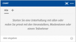 Der Chat-Pod hat ein neues Symbol erhalten. Hinter dem "+" versteckt sich eine Funktion, die es erlaubt allen Moderator*innen bzw. allen Veranstalter*innen eine Nachricht zu senden. Damit gibt es quasi die Option zum Gruppenchat. Vor dem Update war es nur möglich allen oder einer einzelnen Person zu schreiben. Außerdem kann man über das Plussymbol auhc die einzelnenen Personen anschreiben, die sich im Meeting befinden. | |||