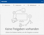 Analog zur alten Version von Adobe Connect befinden sich rachts der Verbindungsstatus und der Hilfe-Button. Neu hinzugekommen ist die Funktion der "Benachrichtigungen". Diese war vorher nur bei gerade eingegangenen Benachrichtigungen verfügbar, nun ist das Glocken-Symbol dauerhaft in der Menüleiste verankert. Wie bereits im Abschnitt zum linken Teil der Menüleiste beschrieben, befinden sich einige Funktionen nach dem Update auf der rechten Seite der Menüleiste. Insbesondere zu erwähnen sind hier das Symbol zum einstellen des Vollbilds und das Symbol zum Beenden des Meetings. Beide Funktionen waren vor dem Update im Menüpunkt "Meeting" verankert. | Analog zur alten Version von Adobe Connect befinden sich rachts der Verbindungsstatus und der Hilfe-Button. Neu hinzugekommen ist die Funktion der "Benachrichtigungen". Diese war vorher nur bei gerade eingegangenen Benachrichtigungen verfügbar, nun ist das Glocken-Symbol dauerhaft in der Menüleiste verankert. Wie bereits im Abschnitt zum linken Teil der Menüleiste beschrieben, befinden sich einige Funktionen nach dem Update auf der rechten Seite der Menüleiste. Insbesondere zu erwähnen sind hier das Symbol zum einstellen des Vollbilds und das Symbol zum Beenden des Meetings. Beide Funktionen waren vor dem Update im Menüpunkt "Meeting" verankert. | ||