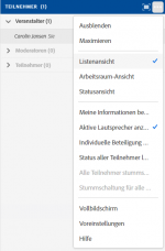 - Die Ansichten sind nun ausschließlich in den Pod-Optionen wechselbar. Außerdem haben sie z. T. eine neue Bezeichnung erhalten. Teilnehmer-Ansicht: Listenansicht; Teilnehmerstatus-Ansicht: Statusansicht.