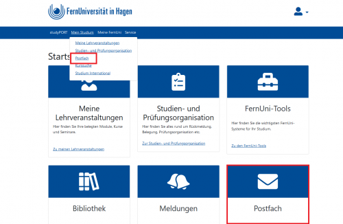Auf der Startseite von studyPORT sowie im Reiter Mein Studium finden Sie Ihr E-Mail-Postfach an der FernUni.