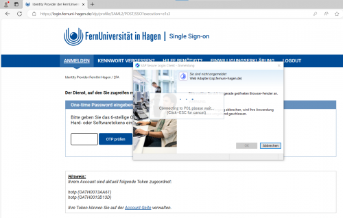 Test des neuen Anmeldeverfahrens mit Single Sign On und Zwei-Faktor-Authentisierung
