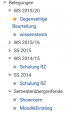 Der Bereich "Belegungen" zeigt eine Sortierung nach Semestern. Bei Auswahl des gewünschten Semesters, finden Sie jene Kurse, die im gewählten Semester belegt wurden. "Semesterübergreifend" zeigt alle Lernumgebungen, die keinem Semster zugeordnet sind. Dabei handelt es sich vor allem um Informationskurse (Beispielbild "Showroom"). Sie finden dort nicht die Lernumgebungen für Belegungen, die über zwei Semester gehen, diese sind den passenden Semstern zugeordnet (Beispielbild "Schulung RZ"). Auch hier sind die Favoriten mit einem gelben Stern markiert.