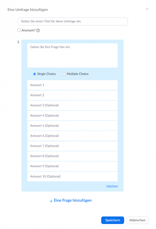 6. Geben Sie einen Titel und Antwortmöglichkeiten ein.