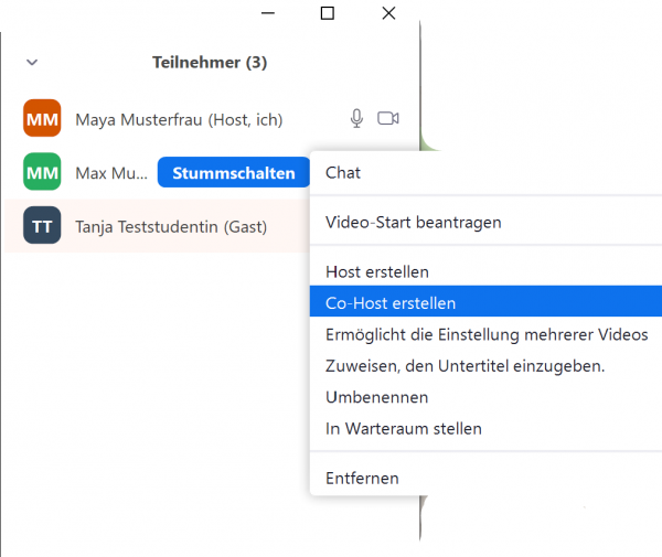 Host Alternative-Hosts / Co-Hosts Teilnehmende