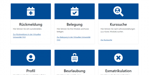 Die Belegung von Kursen und Modulen erfolgt derzeit in der Virtuellen Universität (VU).