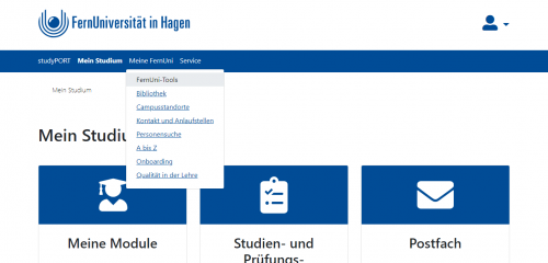 Die FernUni-Tools finden Sie im Reiter Meine FernUni in studyPORT.