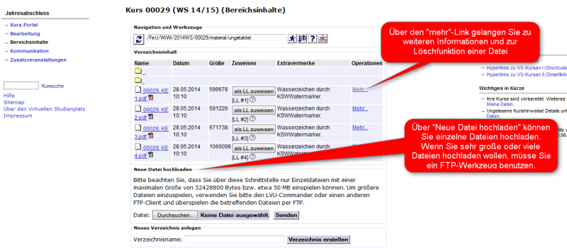 Infos zur Dateiverwaltungsfunktion für Kurse im Virtuellen Studienplatz.